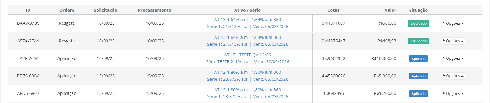 * **Todos**: Mostra todas as ordens (aplicações e resgates).