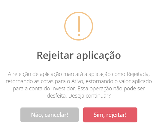 Irá aparecer um informativo dizendo que esse processo **não poderá ser desfeito**. Caso deseje continuar, clique novamente em **Sim, rejeitar!**