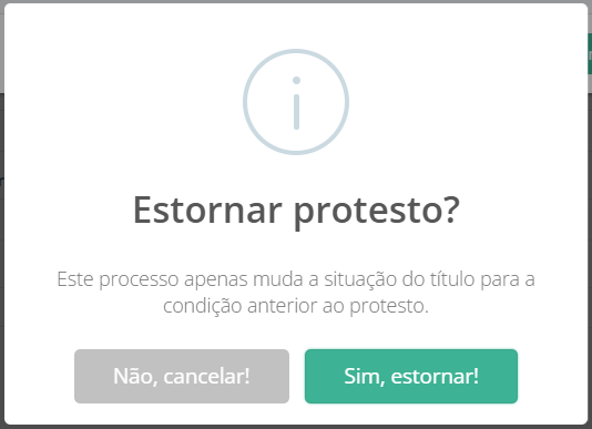Irá aparecer uma Tela para **Confirmação** do **Estorno** do protesto , informando que ele irá voltar para a **situação anterior**.