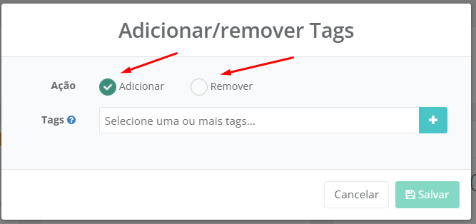 Irá abrir uma nova tela , onde você pode decidir se irá **Adicionar** ou **Remover** Tags.