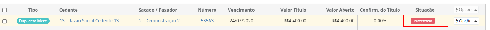 Automaticamente a Situação dele é alterada para **Protestado**.