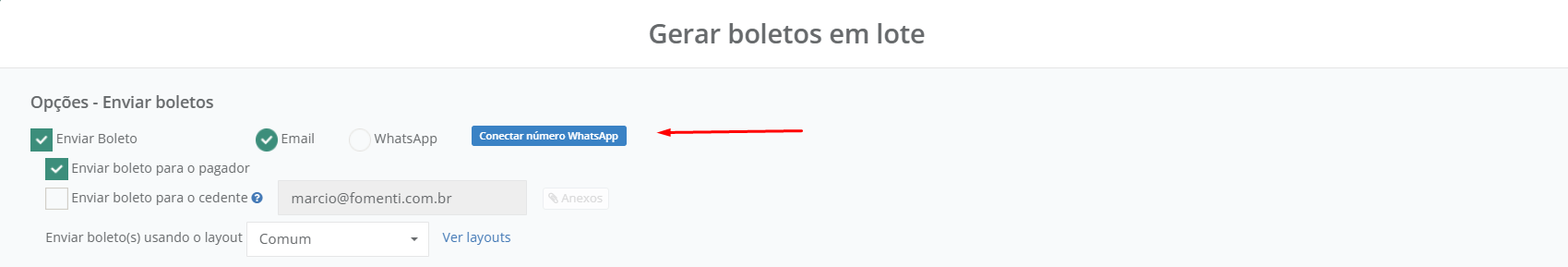 3. Clique na opção **Gerar/Enviar boletos em lote**.
