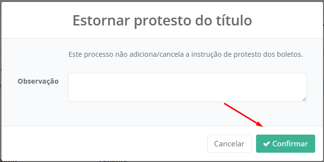 Irá abrir a tela para registrar alguma **Observação** caso tenha e em seguida basta clicar em **Confirmar**.